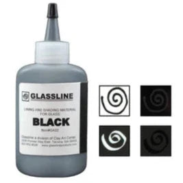 Glassline Pens are a lining and shading material for glass. They are simple in design, easy to use, and can be thinned with water. The Glassline colors can be applied between multiple layers of glass or on the top surface for a complex dimensional look. Glassline is compatible with most types of glass from Float to COE 90 and 96. Glassline Pens are lead-free and food safe. Sold in a 2 oz bottle. Pack of 1.
